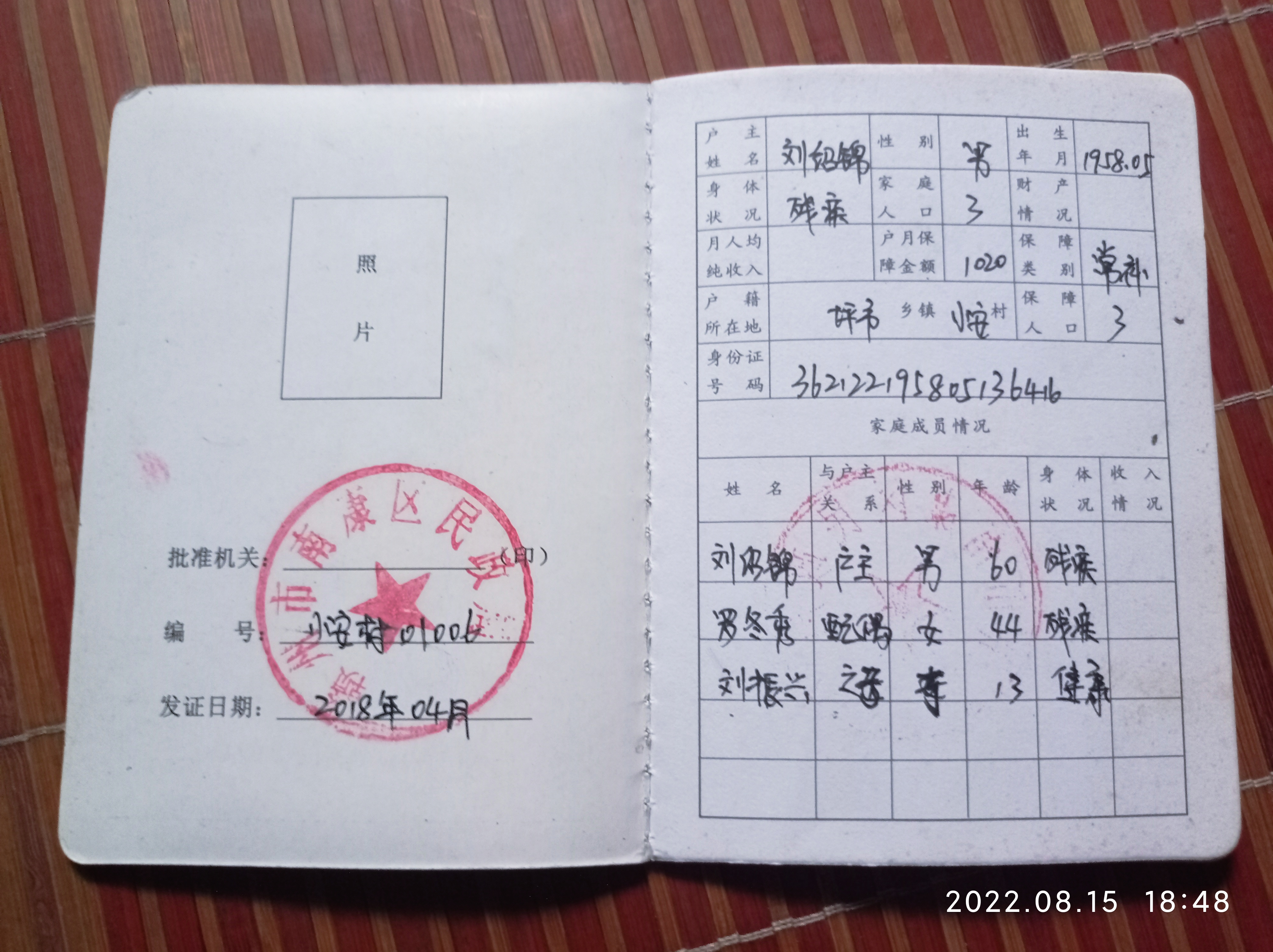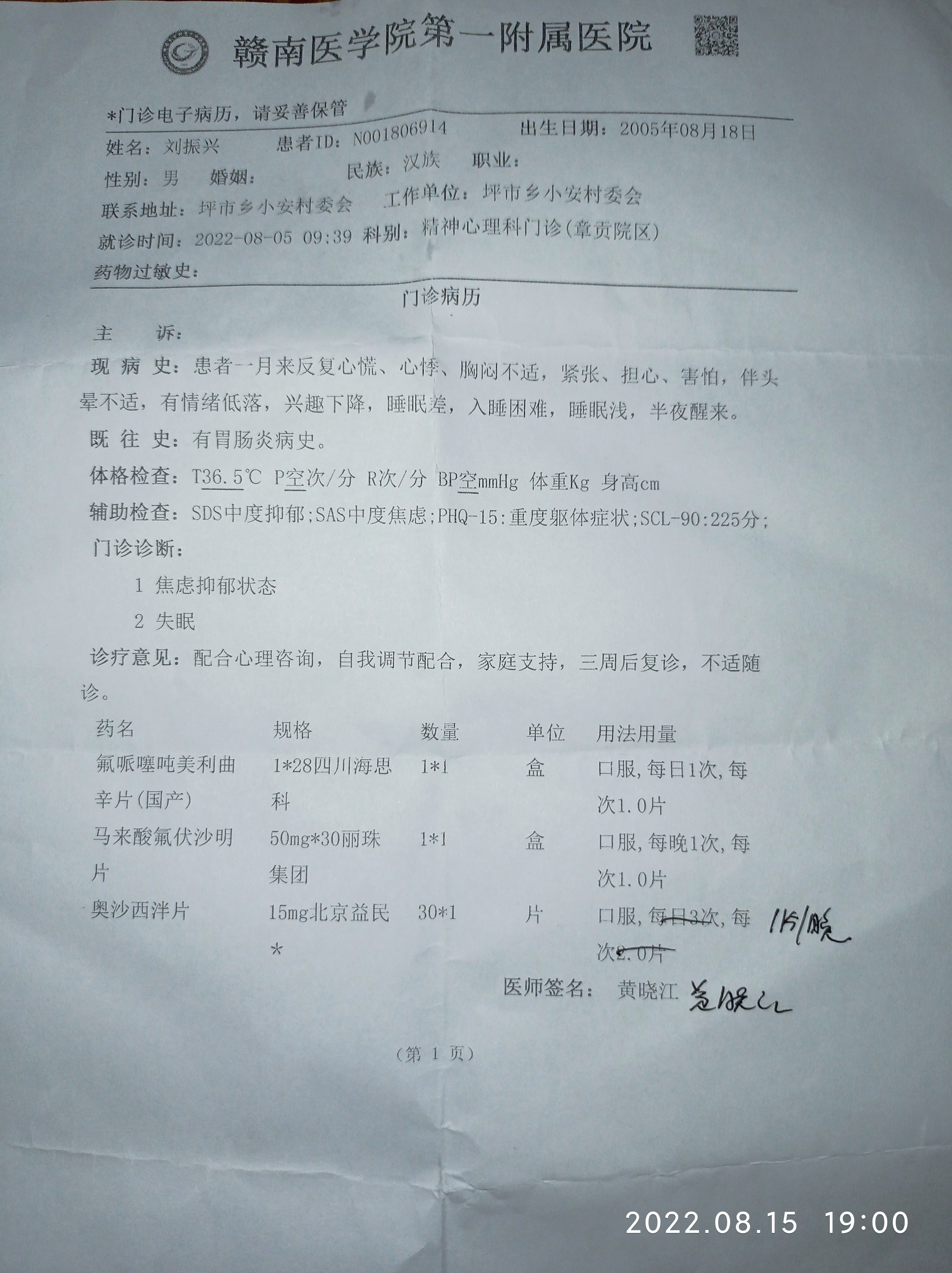 ?? 您好!我叫刘振兴,今年17岁,家住赣州市南康区坪市乡小安村塘里组7号,身份证:360782200508186434,现就读于南康三中高二年级。我家居住政府援建保障房,家中三口人,父亲刘绍锦已有64岁,长期患有肺气肿和慢阻肺的慢性疾病,长期服药腿部也有残疾,母亲罗冬秀患有精神残疾,长期住在唐江康华医院,长期服药,本人患有慢性肠胃炎咽炎,焦虑抑郁症(躯体症状较明显),长期服药,我家三口人饱受疾病和贫困的折磨。高中以来,家里经济状况更是难上加难,由于父亲年事已高且患有慢性疾病,母亲患有精神残疾,都无法劳作,以至于家里经济收入甚微,仅靠每个月1500低保补贴艰苦生活,而学校每学期的学杂费(几千),补习费(近千),和我每个月日常的生活费(700-900),加上家里日常开销,生个病拿个药,就会出现经济危机,这些巨大的压力都压在了我爸身上。我的生活费经常都是我爸临时问亲戚朋友借来的,但谁不是为了自家好,谁会天天管别人家的死活啊,嘴上大家都是说,有困难提出来大家一起解决,可真到了吃饭都没钱时又有几个会伸出手来帮忙啊,有时候要问几个亲戚才借的到几百。到了高三,所需费用肯定更高,高中又不能助学贷款,家里的日常开销仅靠每个月的低保补助真的不够,我真的很困苦,我爸的身体也是一年不如一年,我感到绝望,不知道该怎么度过这一年,我想考大学,考上大学才是我最好的出路,才有可能实现我的理想,但是家里经济状况很难支撑得起,我渴望得到帮助,希望您看到了能够给予我一丝希望,万分感谢!