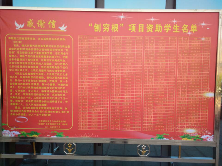 5月9日,吉安县在江西华忆电子工业中等专业学校举行了“刨穷根”项目资金发放仪式。县委常委、副县长胡九根参加活动并讲话,县教育局、县民政局、县慈善会、学校负责人以及受助学生和学生家长等150多人参加发放仪式。