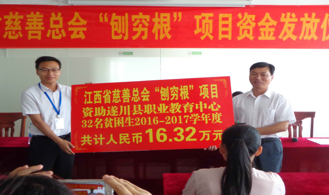 6月8日,遂川县慈善会开展了“刨穷根”项目资金发放仪式,县慈善会、县民政局负责人、受助职校领导和受助学生、家长参加了发放仪式。