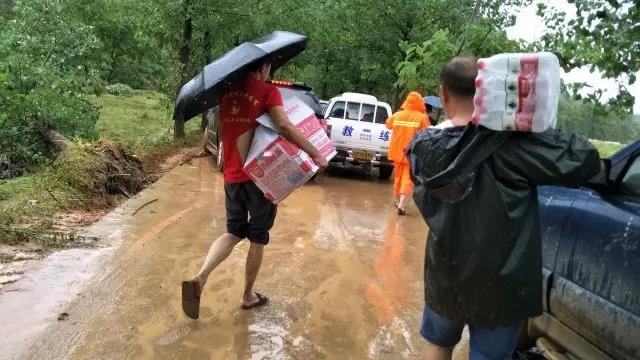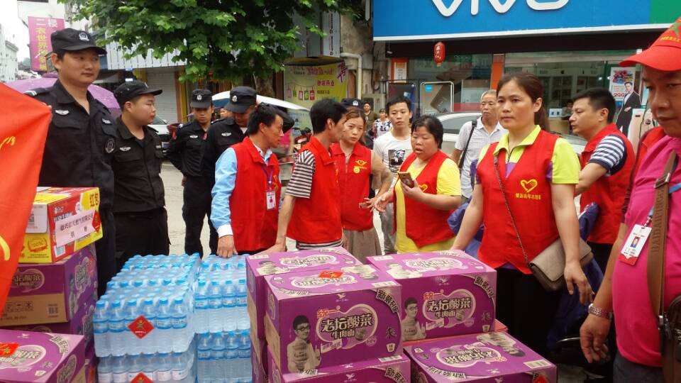 修水县慈善义工搬运物资送往重灾区