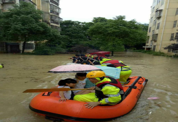 横峰县人防志愿者开展救援工作,转移受困群众