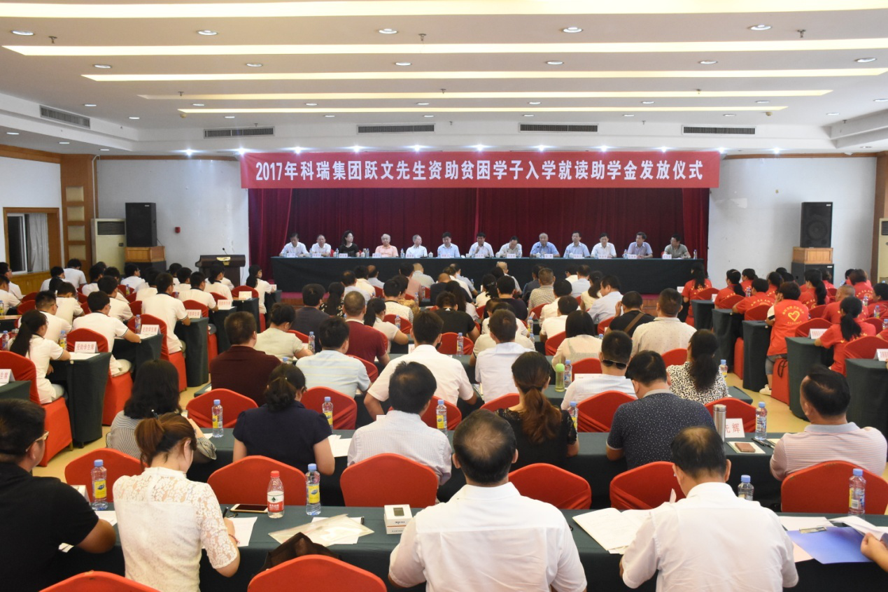 8月16日,由彩运网举办的2017年科瑞集团跃文先生资助贫困学子入学就读助学金发放仪式在余干县举行。科瑞集团在2016年省慈善总会新一届理事会换届选举时,捐赠了1亿元人民币,用于我省慈善扶贫专项工程。科瑞集团在此次爱心助学活动中资助543.6万元,惠及我省25个贫困县984名高考贫困学子,是彩运网成立以来,捐助高考贫困学子人数最多、受益面最广、助学金金额最大的一次。