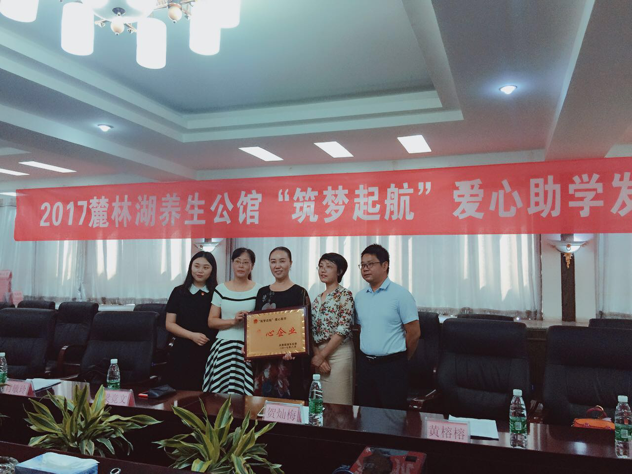 仪式上,副区长贺灿梅为麓林湖养生公馆董事长梁竞文颁发了“爱心企业”奖牌,市慈善会办公室主任肖敏玲对积极捐资助学的爱心企业和社会各界人士的慈心善举给予了充分肯定,鼓励受助学生坚持不懈追梦、艰苦奋斗圆梦;接着梁竞文董事长对受助学生表达了殷切的希望和衷心的祝福,并以自身家庭情况、成长经历和慈善公益回顾勉励在座的同学们,希望同学们保持自信,通过自身的努力获得成功;坚持诚实做人、诚信做事;感恩父母、回报社会。