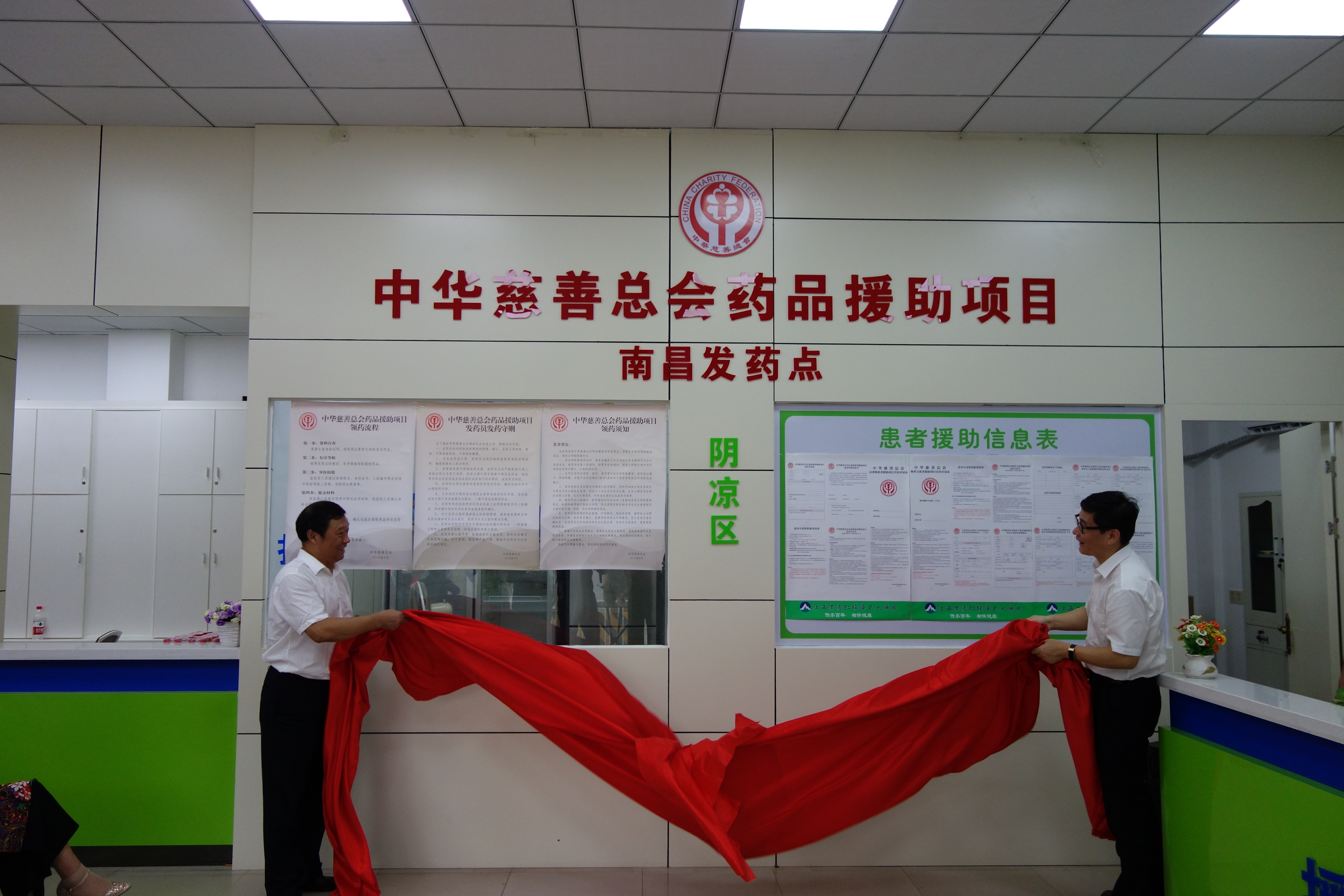 9月12日上午,彩运网在黄庆仁栈华氏大药房象山南路店举行药品援助项目发药点揭牌仪式,省慈善总会副会长朱和平、江西南华医药有限公司董事长王克勤出席活动。