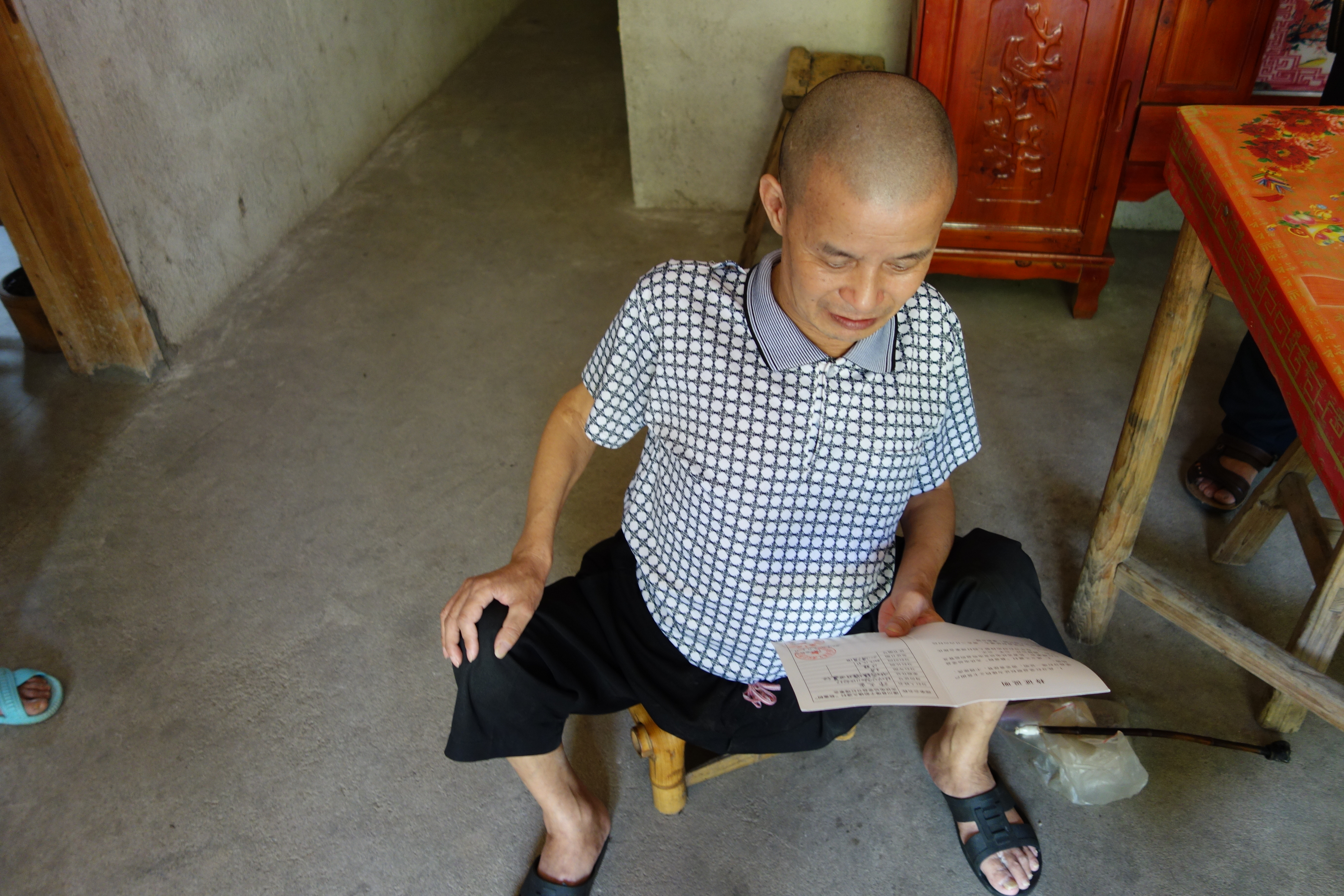 今年61岁的邓火生也是村里的低保户,自幼患有小儿麻痹,下肢萎缩,需要借助两个小板凳才能挪动。在农村一亩多地只够糊口,儿子在外务工,每年寄回1万元,家里至今还欠有4万元的外债。光伏电站每年2000元的股权分红对这个极度贫困的家庭来说,无异于雪中送炭。“这笔钱对我的家庭来说非常重要!”朴实的语言、憨厚的笑容,这一刻的他对脱贫充满希望。