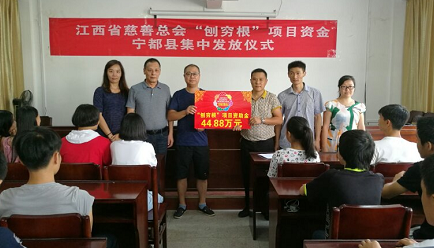 日上午彩运网“刨穷根”项目资金在宁都县职业中等专业学校和技工学校举行集中发放仪式,共向