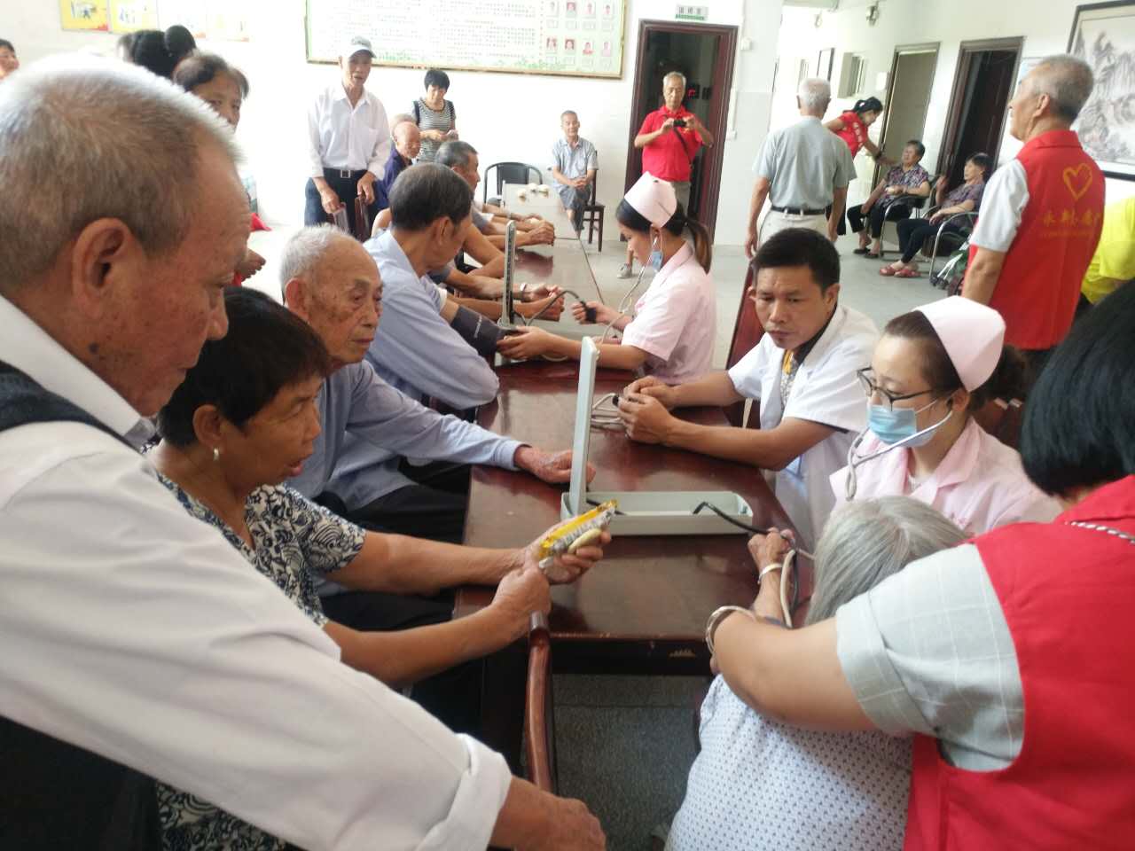 志愿者们到达福利院后,一组志愿者为失能、病残老人打扫房间卫生,送上水果点心,为老人们量血压,与他们闲话家常;另一组志愿者搬桌椅、摆水果,将有自理能力的老人扶出房间,观看志愿者们自编自演的文艺节目。在节目表演过程中,志愿者与老人们互动不断,其乐融融,福利院里洋溢着欢快的笑声。