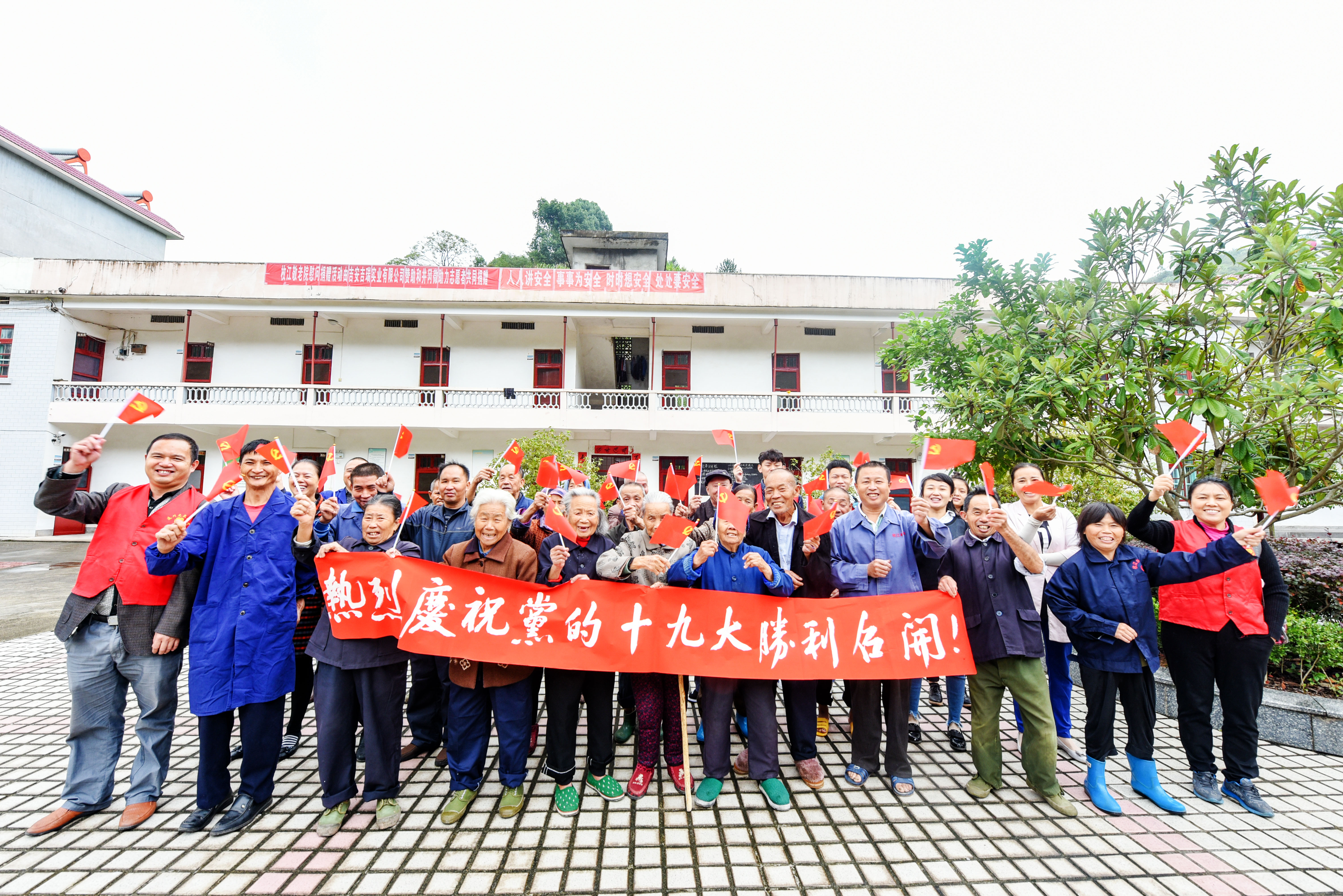10月18日,中国共产党第十九次全国代表大会在北京人民大会堂隆重开幕。遂川县龙泉社工党支部的党员和社工来到枚江镇珠田乡敬老院,与老人们一起收看了大会盛况,庆祝党的十九大胜利召开。