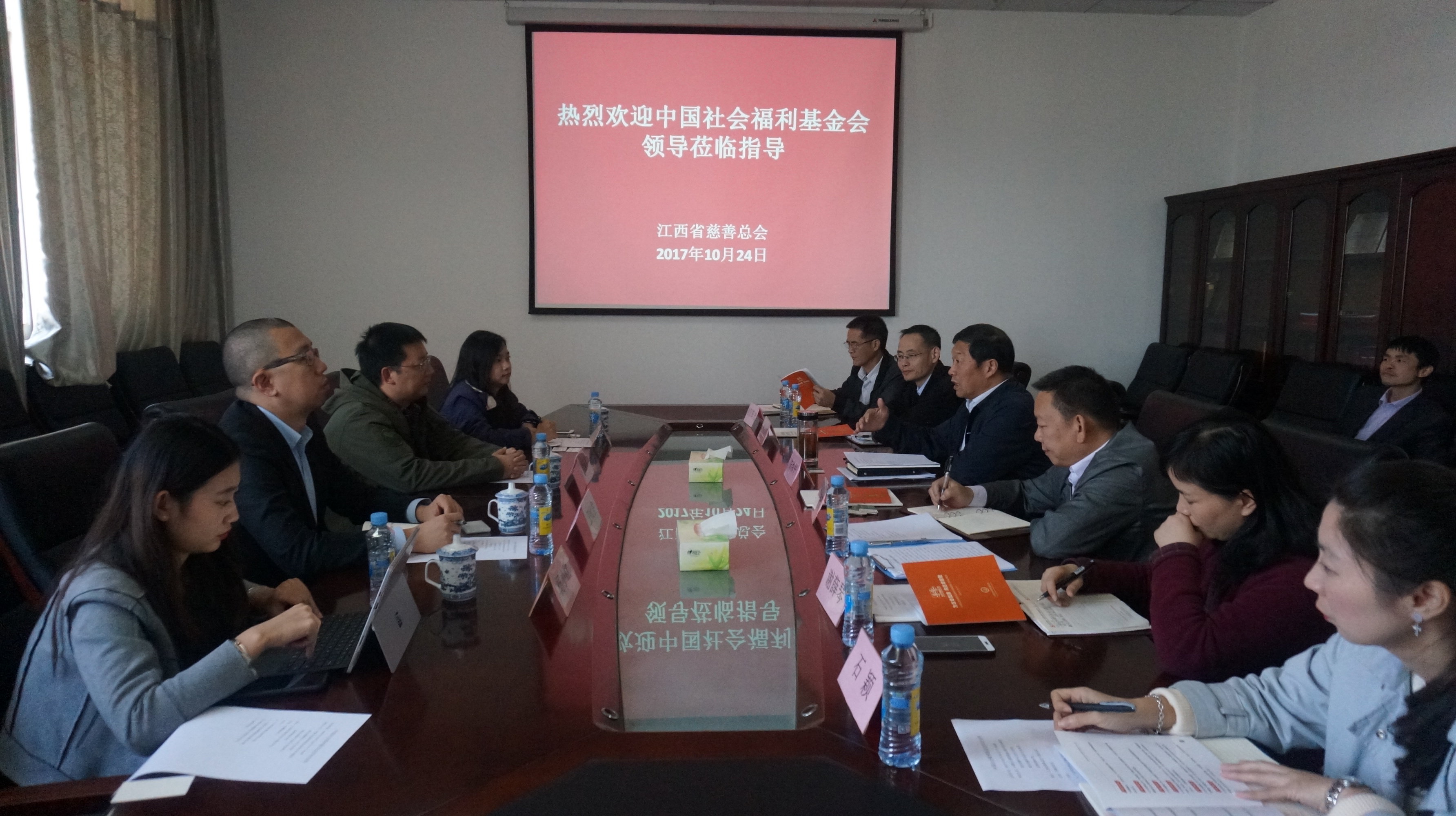 10月24日下午,中国社会福利基金会与彩运网就919大病救助项目进行合作洽谈。中国社会福利基金会秘书长肖隆君、联合劝募中心主任王伏虎、副主任金春玉、品牌部杨小欧,省慈善总会副会长朱和平、秘书处处长李赣茂、副处长熊志亮等人出席座谈会。