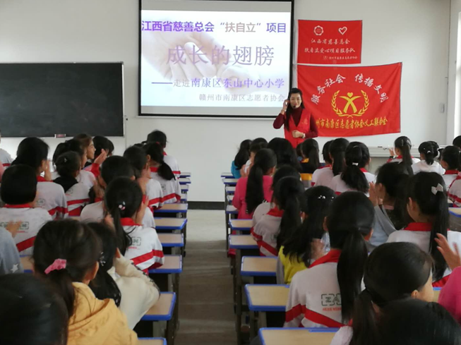 11月14日,赣州市南康区志愿者协会“扶自立”项目关爱女生组走进东山中心小学,开展关爱留守儿童《成长的翅膀》专题活动,旨在让更多的农村留守女孩了解青春期的生理、心理变化,树立正确的爱情观。