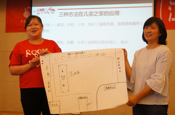 北京师范大学中国公益研究院邀请了北京、香港、四川等地专家为“童伴妈妈”授课。北京师范大学中国公益研究院儿童福利研究中心徐珊主任就童伴妈妈如何资源链接,帮助留守儿童解决问题进行详细阐述;中国扶贫基金会杜红芳项目官员就“童伴妈妈”项目的管理进行了全面介绍;香港注册社会工作督导、心智障碍者家长组织联盟技术顾问周佩仪女士就儿童社会工作的理念以及对儿童社工实务工作中的个案、小组、童伴之家及社区等实务工作方面进行了全面解读;江西省未成年保护中心党委副书记何永发为学员们讲授江西省儿童福利与保护政策;此外,培训活动还邀请了四川省模范童伴妈妈分享工作经验与心得体会。