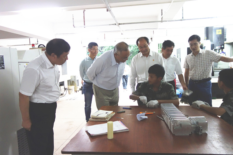 6日下午,省慈善总会一行前往华忆电子工业中等专业学校考察,参观了汽车制造与维修、数控模具等实训室。在数控模具实训室,17数控模具大专班的刘林平和修集良在认真学习数控技术,徐毅仔细询问他们家庭和学习生活情况,并鼓励他们认真学习,掌握技能,为社会做贡献。