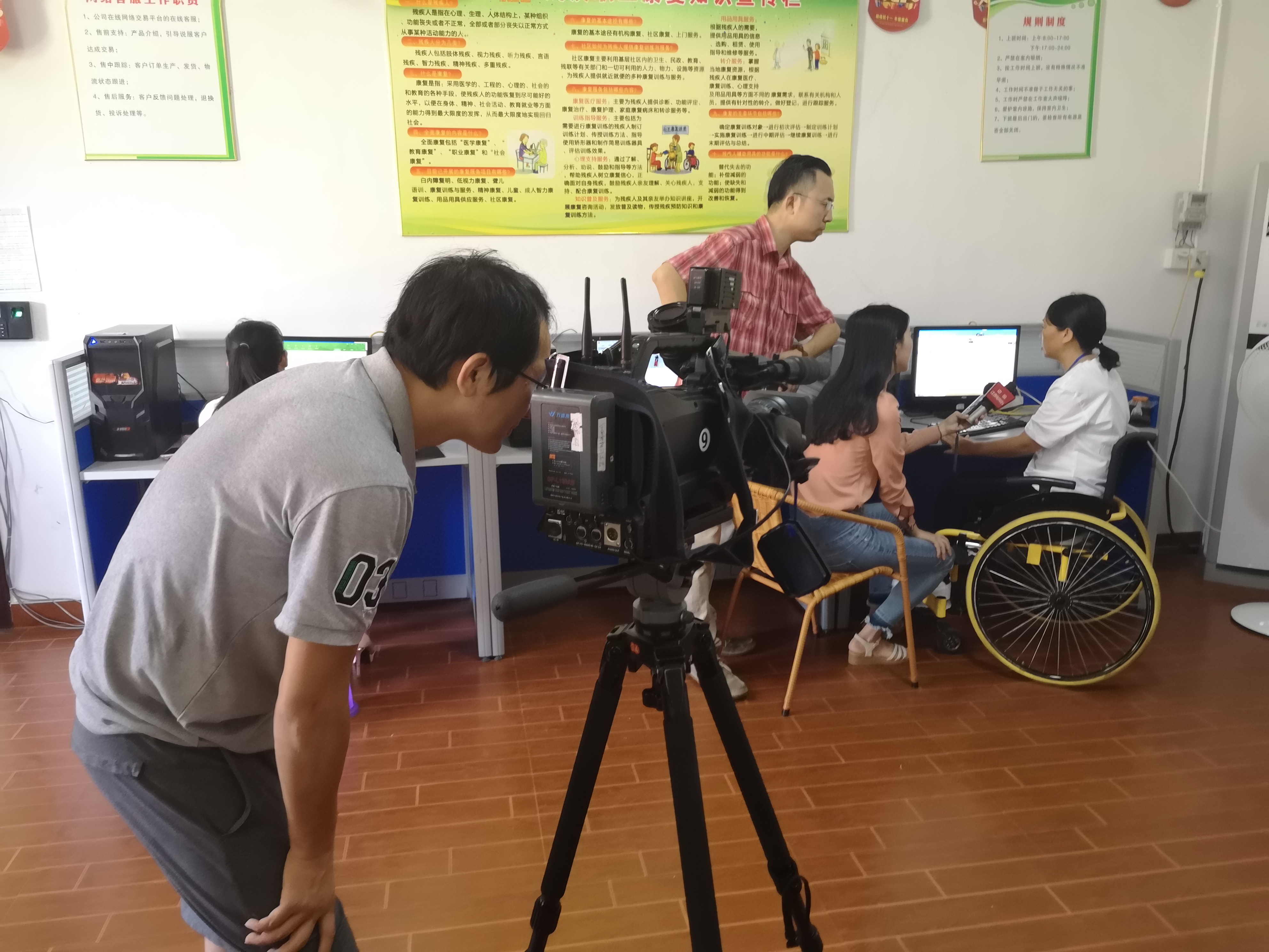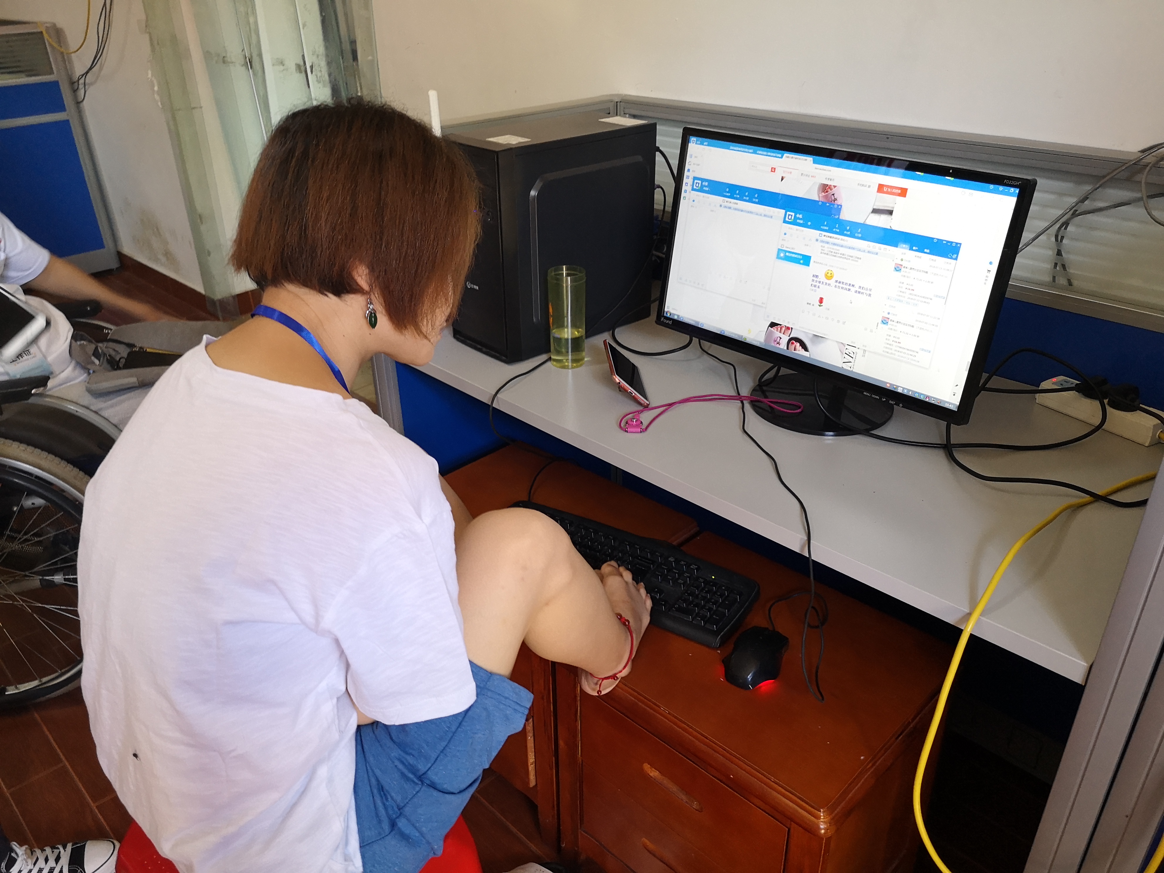 7月13日上午,在鄱阳县桃馨缘残疾人康复托养中心,大家见到了无臂女孩詹彩霞,她是一名网络购物平台客服,用脚趾在键盘上熟练地回复客户咨询;大家见到了瘫痪的陈桂生,坐在轮椅上编制串珠饰品;大家还欣赏了残疾朋友们表演的轮椅舞蹈、快板说唱。这里没有颓废,没有压抑,所见之处皆是一张张开心、阳光的笑脸。