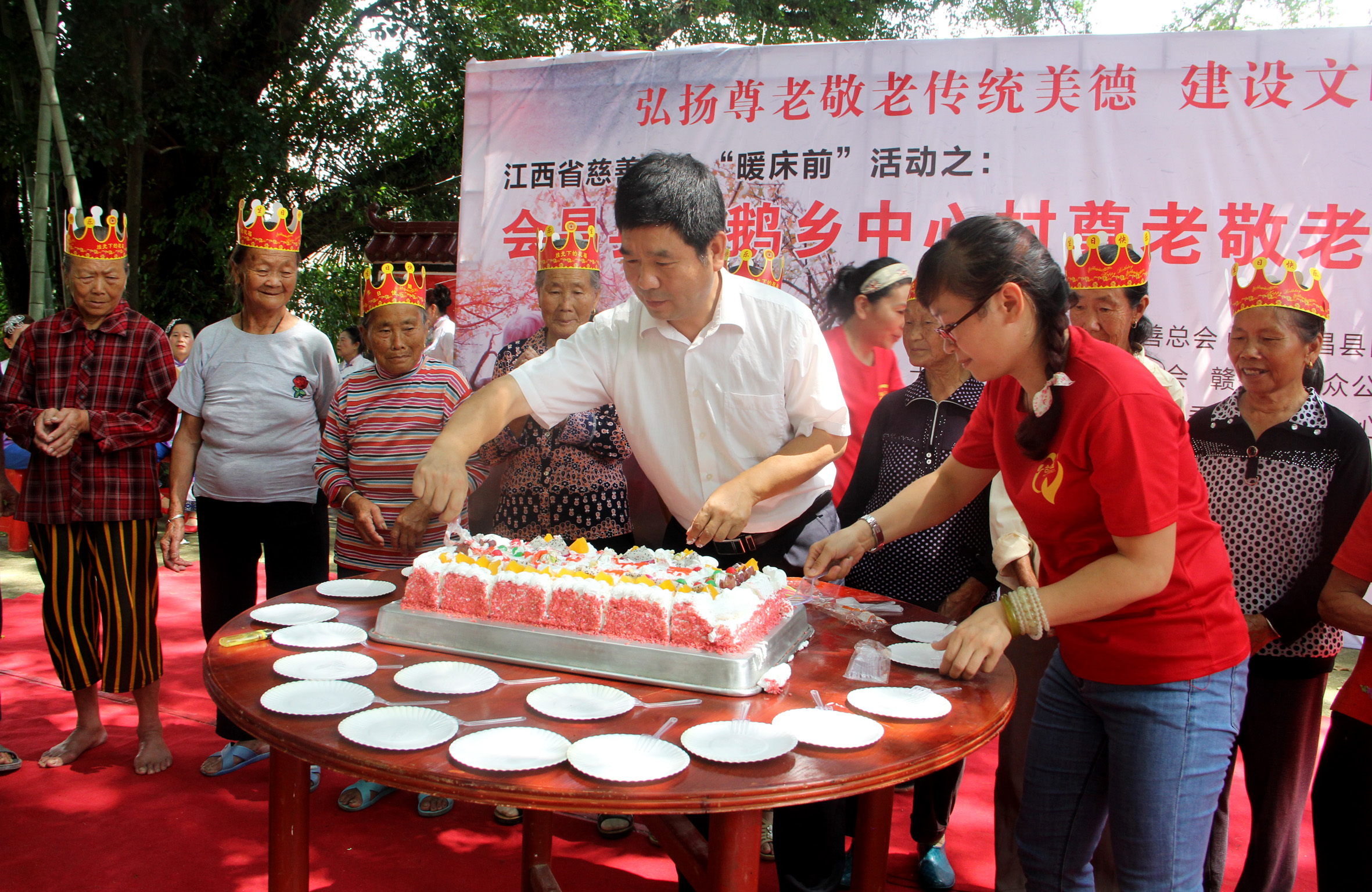 表彰“孝亲敬老模范”、发起“尊老敬老”倡议、为村里八月寿星集中过生日、把文艺节目、健康体检送进村里……8月4日,会昌县白鹅乡中心村大樟树下文化广场格外热闹,会昌县白鹅乡中心村尊老敬老大型宣传活动在这里隆重举行。