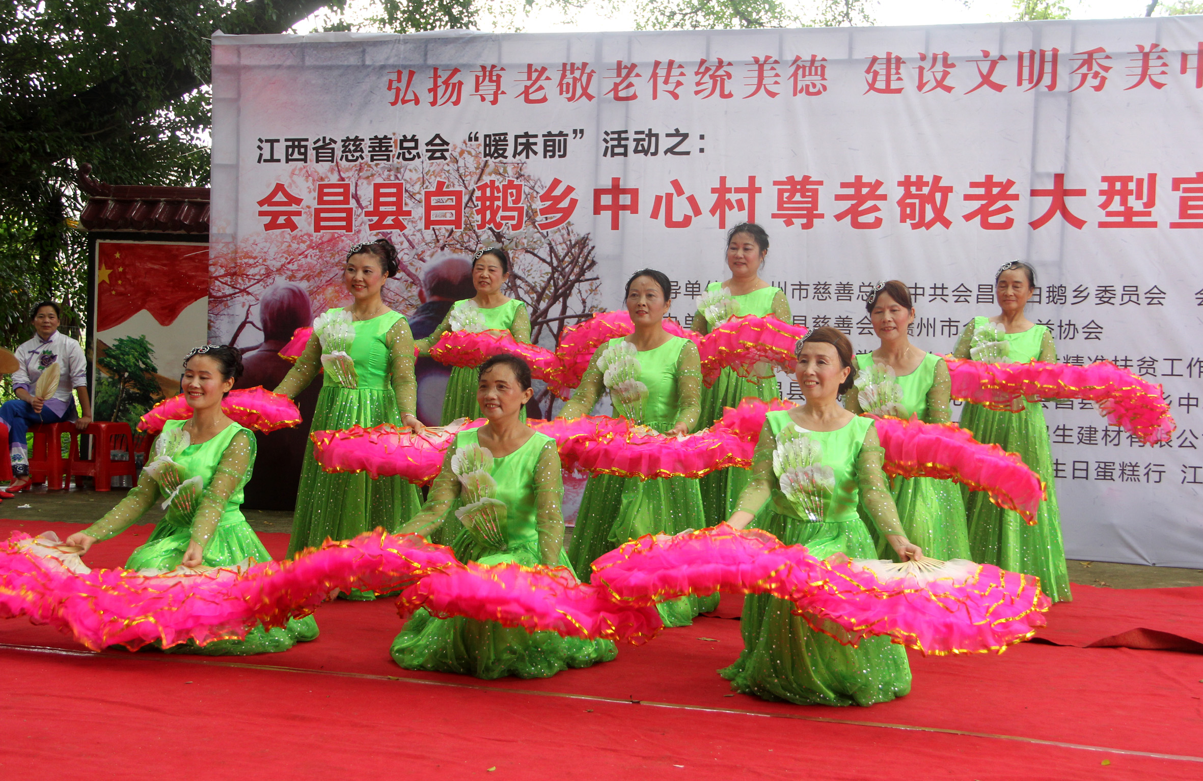 会昌县白鹅乡中心村尊老敬老大型宣传活动是会昌县慈善会执行彩运网“暖床前”项目的其中一个活动,本次活动由会昌县慈善会联合赣州市合众公益协会主办。赣州市合众公益协会发挥资源优势,带着赣州经济技术开发区星缘艺术团的16名队员,为村民送去了精彩的文艺节目;邀请到赣州协和耳鼻喉医院的医务人员为村民义诊;带着爱心企业赣州鸿生建材有限公司(安华卫浴)为村里送去6套广场舞音响,助力该村发展推广健身操、广场舞,用健康的生活方式安享晚年。(刘建琦 肖荣祯)
