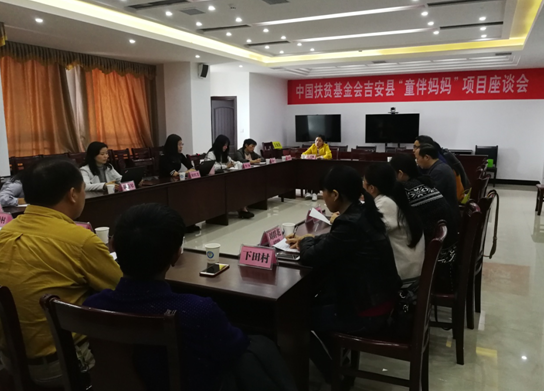 10月26日,中国扶贫基金会项目官员杜红芳,省慈善总会慈善服务部主任谢薛琴等到吉安县调研新增“童伴妈妈”项目,与民政、公安、卫计委、司法、妇联等相关单位以及10个项目村的童伴妈妈进行调研座谈会。
