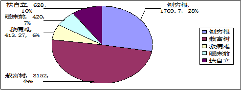 截至今年10月底,“善济江西 脱贫攻坚”慈善扶贫专项工程五大任务已下拨资金6209.7万元,其中栽富树3152万元,刨穷根1769.7万元,救病难413.27万元,暖床前420万元,扶自立628万元,各项目分别扶助1576户建档立卡贫困户增收脱贫,资助3470名贫困家庭中职生进入校园,帮助376名大病患者获得及时有效治疗,为18.2万孤寡失独老人提供志愿服务90.2万余小时,为7.4万农村留守儿童和残疾人提供志愿服务22.5万余小时。