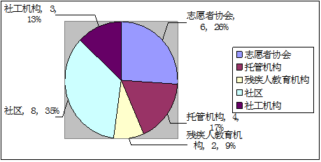 “扶自立”项目实施单位涉及全省23个县的27家社会公益组织。截至11月底,27家社会公益组织已为7.4万农村留守儿童和困难残疾人提供志愿服务22.5万余小时。从27个项目实施单位性质来看,有依托幼儿园、中小学校内的“留守儿童之家”,有依托当地乡镇(街道)、村(社区)公共服务设施,有依托学校周边的留守儿童托管中心等服务阵地,组织专职工作人员、社工、志愿者有针对性地开展农村留守儿童关爱服务活动。从27个项目实施单位类型来看,有专业社会工作服务机构3家,志愿服务组织6家,小学4家,社区、村委等基层组织8家,儿童服务托管机构4家,残疾人教育服务机构2家。