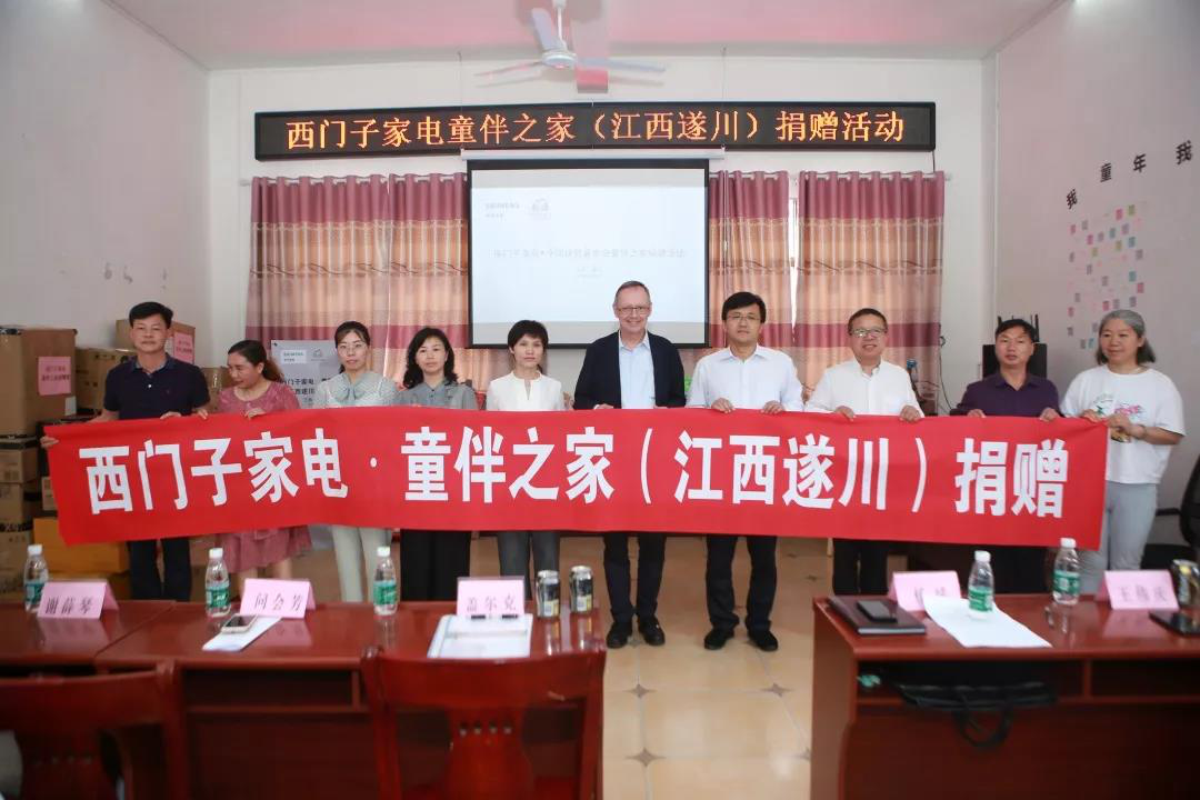 六一儿童节前夕,西门子家电投资(中国)有限公司董事长盖尔克、高级副总裁兼首席销售官王伟庆及部分员工代表,来到我省遂川县盆珠村的童伴之家,将员工捐赠的爱心物资送给童伴之家的孩子们。