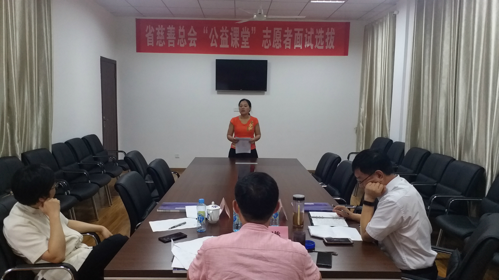 6月22日,省慈善总会“弘传古典诗词公益课堂”(简称“公益课堂”)志愿者面试选拔工作在昌举行,来自我省32所中小学校的41名志愿者参加了面试。