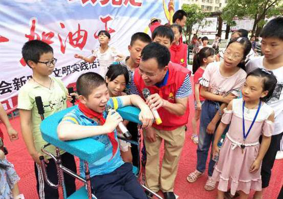 活动现场,40余名留守儿童接收了项目捐赠的食品和书包。残障儿童小陈君还收到了一份特别的礼物—助行器。孩子们表演了《感恩的心》、《小星星》、《世上只有妈妈好》等手语歌曲和舞蹈,还为项目志愿者佩戴了红领巾。小陈君表示十分感谢志愿者帮助他解决正常行走问题,虽然自己身有残疾,但是一定会好好学习,用优异的成绩报答党的恩情。