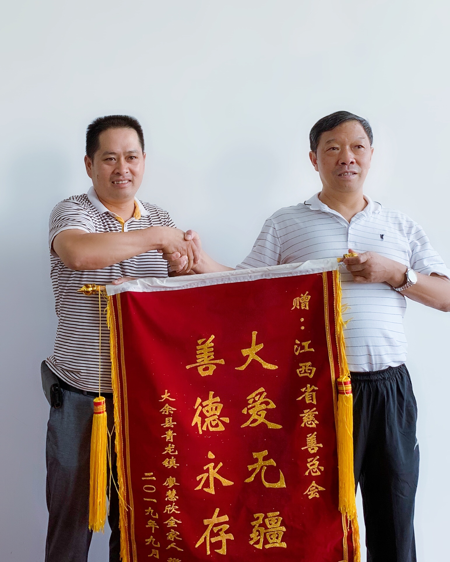 他叫廖达才,家住赣州市大余县青龙镇平岗村,是建档立卡贫困户,也是“救病难”项目受助患儿廖慧欣的父亲。此次他专程从赣州大余县赶到南昌,在FM99.2陪同下来到彩运网,代表全家亲手送上了一面绣着“大爱无疆、善德永存”的鲜红锦旗。