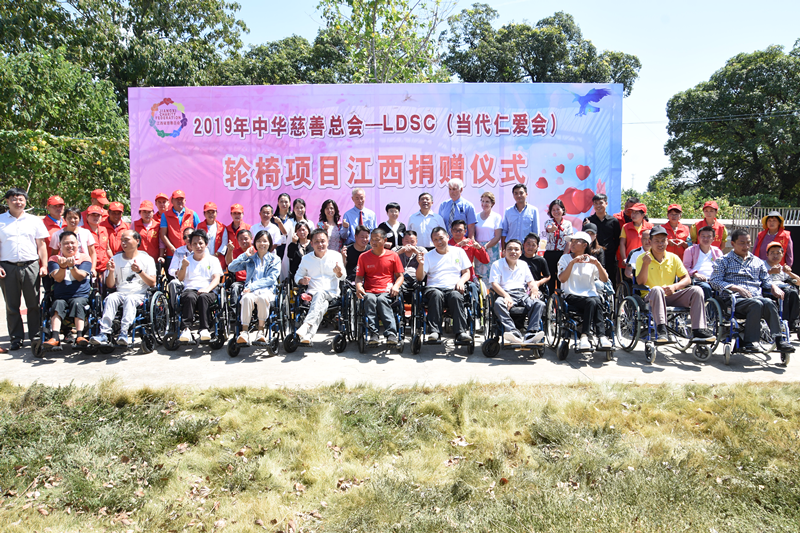 9月24日,中华慈善总会--LDSC(当代仁爱会)轮椅项目江西捐赠仪式在鄱阳县桃馨缘残疾人康复托养中心举行。省慈善总会副会长朱和平,LDSC中国区总监韦弗、卓楚轩,中华慈善总会对外联络部外事专员刘晓嘉,省慈善总会秘书处处长胡燕,鄱阳县人民政府副县长李晓云及部分轮椅受赠代表参加捐赠仪式。