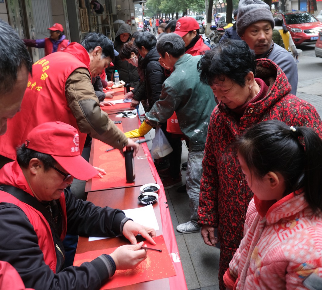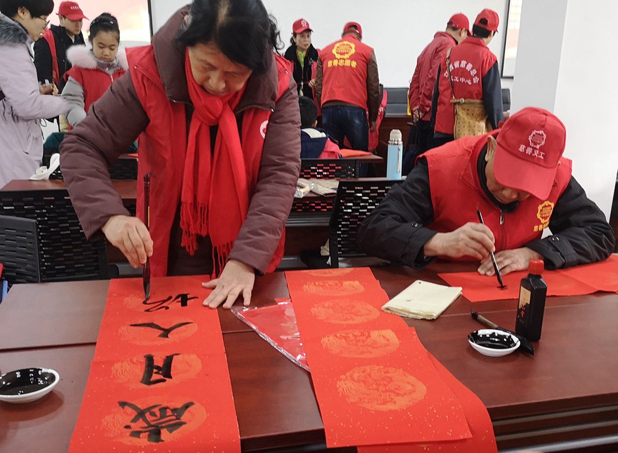 墨香阵阵沁心脾,人人处处笑开颜。活动现场,来自社会各界的书法志愿者挥毫泼墨,为社区居民和困难群众书写春联,字体遒劲有力,内容吉祥欢乐。一幅幅春联表达着赞美伟大祖国、共享美好时代和对美好生活祝福。