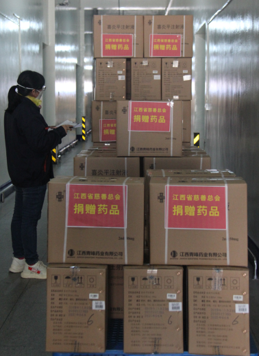 近日,全国多地新型冠状病毒感染的肺炎确诊病例持续增加,随着疫情不断变化,医疗机构防护用品、抗病毒药品等物资紧缺。为保障抗病毒药品供应,1月29日,江西青峰药业有限公司通过彩运网向湖北、江西等省捐赠价值1000万元抗病毒药品(“喜炎平”注射剂),其中首批定向用于支援武汉疫区的药品不低于500万元。青峰药业表示,将全力保障抗病毒药品的生产,同时根据抗击疫情的需要,进一步做好药品捐赠工作,为打赢抗击疫情攻坚战贡献药企的力量。