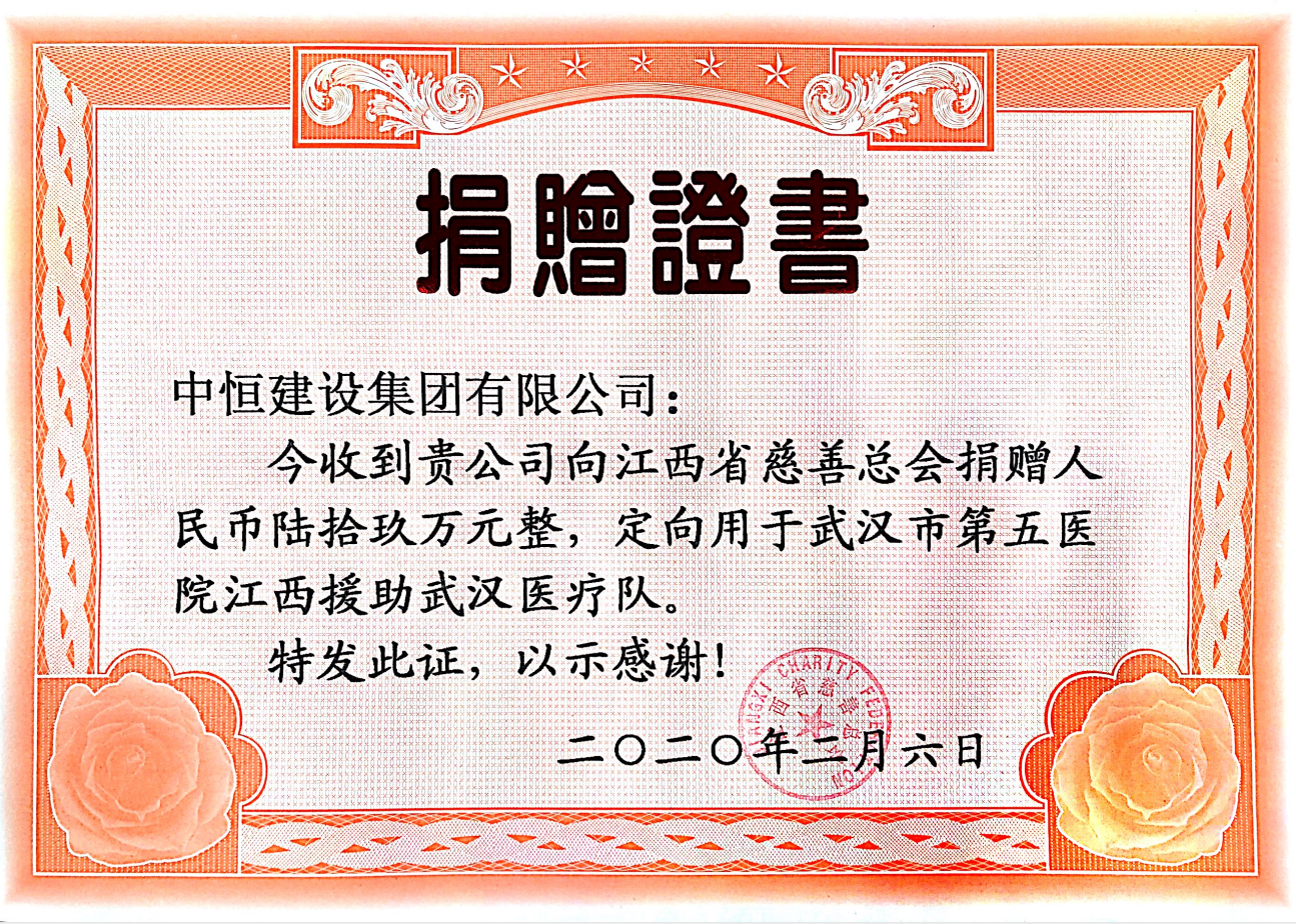 2月5日,中恒建设集团有限公司为江西赴武汉医护人员献爱心,捐助69万元。中恒建设控股集团董事局主席聂吉利表示:“中恒建设是一家有40年历史的江西本土企业,多年来勇于承担社会责任,本次疫情发生后,我们密切关注,投入超过100万元用于抗疫一线捐赠、建筑农民工防疫、医疗物资捐赠等,目前已通过海外渠道采购了待捐赠物资,通过南昌县红十字会捐赠24.3万元的车辆用于县疾控中心疫情防控,本次为援鄂医护人员点赞,是中恒建设公益行动的重要举措。” 中恒建设控股集团董事局副主席聂恺表示,请所有奔赴前线的医护人员保重身体,他们不是独行者,越是困难,企业越要承担社会责任,我们在后方全力支援抗击疫情,共赴时艰。