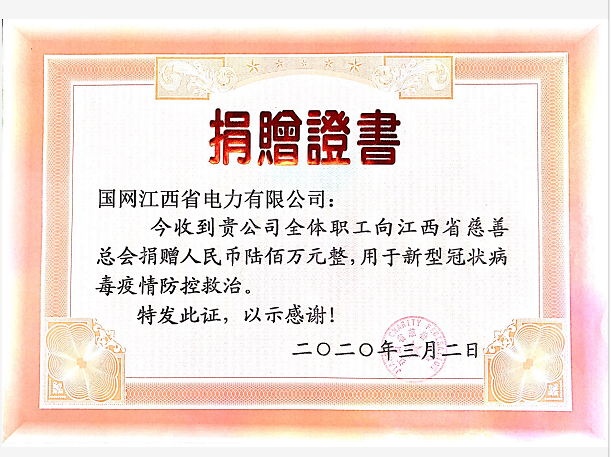 疫情发生以来,国网江西省电力公司系统干部职工在做好自身疫情防控和保障全省电力可靠供应的同时,以各种形式支援疫情防控。不仅组织业务骨干和保电车驰援湖北黄冈参加紧急保电工作,还派出单位员工前往湖北武汉参加救援物资保障工作;不仅多方筹措捐赠了30万个口罩支援疫区,还积极发动全系统干部员工自愿捐款,为疫区群众送去关心和温暖。此次捐赠的600万元善款,将全部按照省疫情防控应急指挥部的要求,用于支援疫情防控工作。