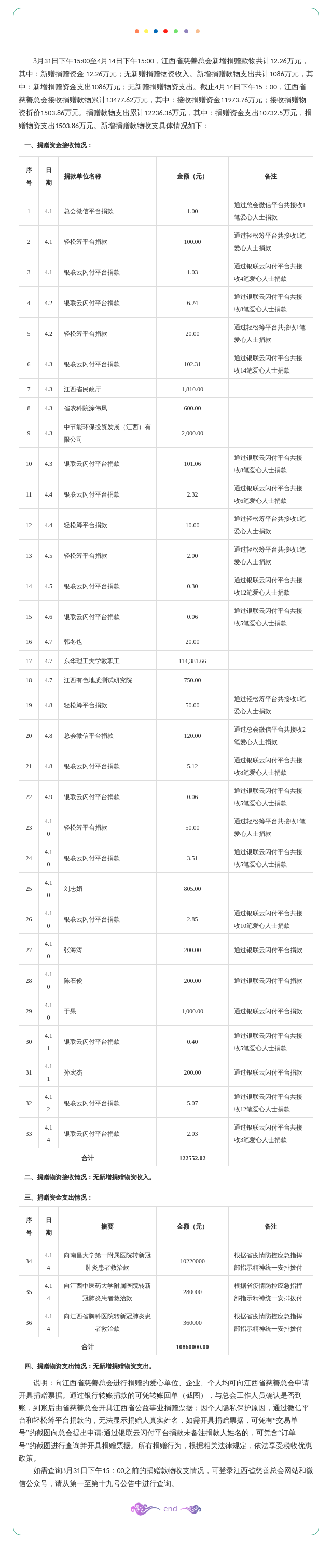 彩运网抗击疫情接收社会捐赠情况公告(第二十号)