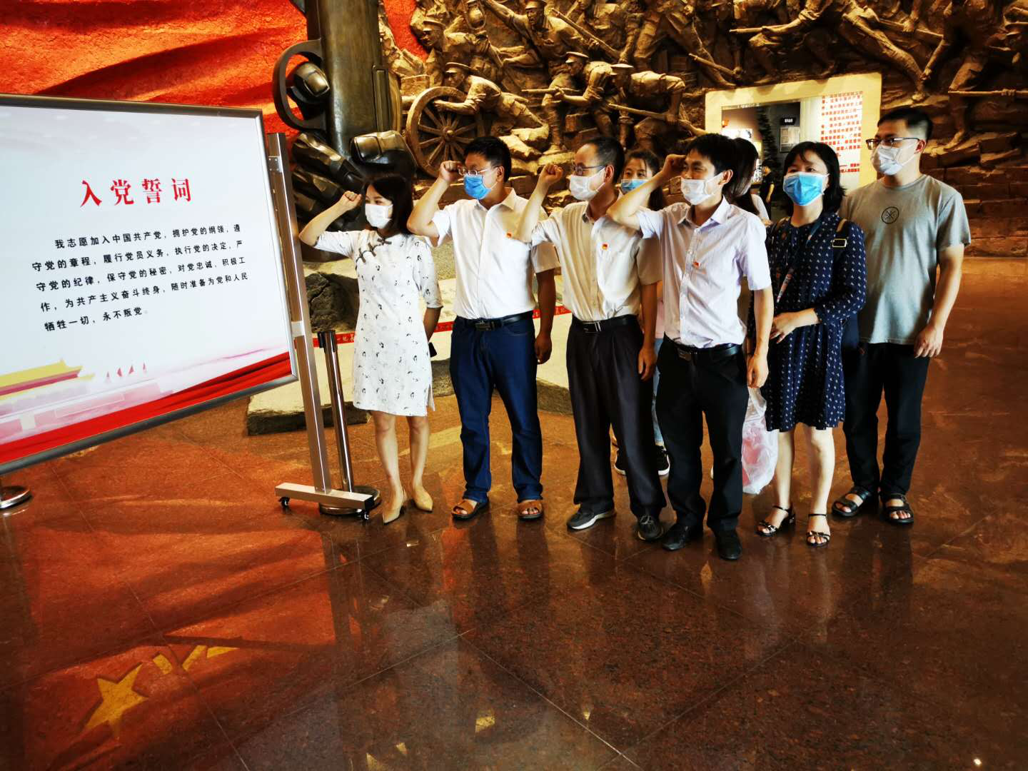 6月30日,秘书处党支部组织党员干部赴南昌八一起义纪念馆,重温入党誓词,缅怀革命先烈,铭记革命历史,弘扬革命精神,接受革命传统教育。大家怀着无比崇敬的心情,仔细观看革命先烈的英雄事迹,一个个顶天立地的革命英雄,一个个感人至深的革命故事深深震撼着大家的心灵,让大家接受了一次灵魂的洗礼和升华。大家纷纷表示,作为新时期的共产党员,要铭记党的宗旨,继续发扬艰苦奋斗精神,坚定理想信念,牢记慈善人的初心使命,扎实努力工作,为推动新时代慈善事业发展贡献力量。