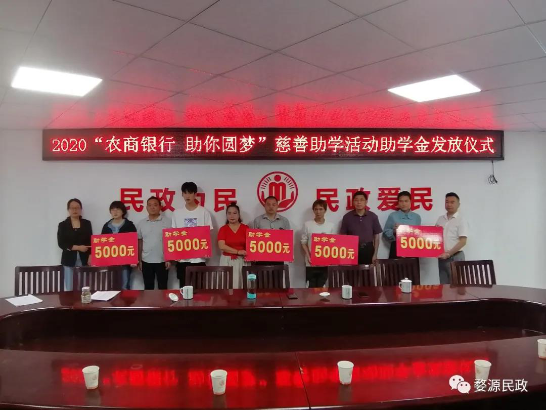 2020年,彩运网联合江西辖内农商银行在全省范围内开展2020“农商银行 助你圆梦”慈善助学活动,本次活动资助2020年本省高考分数达一本线的建档立卡贫困户、低保户、孤儿。全省共资助2080名,对每名受助学生一性次发放5000元助学金。我县有11名高考学生得到农商助学活动的资助,此外,婺源县慈善会还资助了4名贫困高考学生,一次性发放4000元助学金。助学金通过一卡通汇入受助学生的账户。