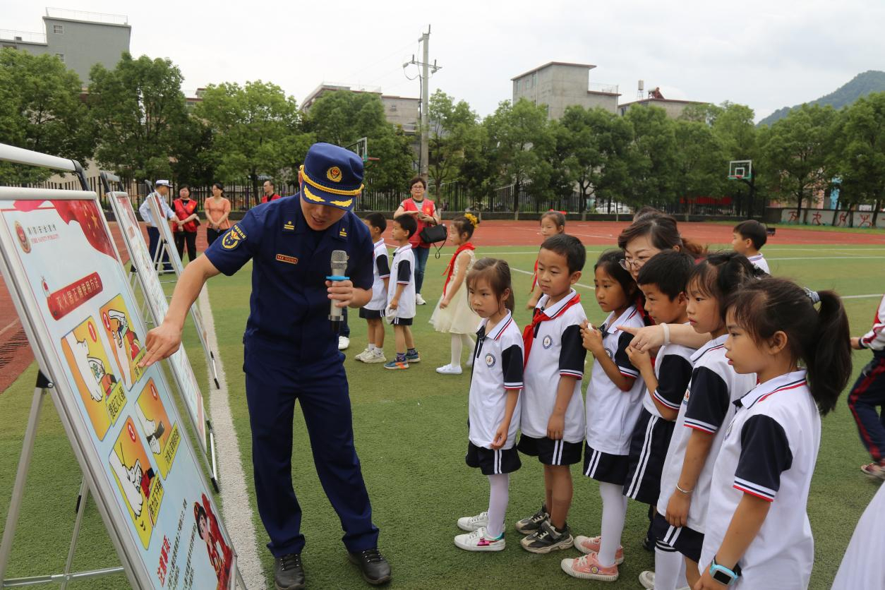 为关爱留守儿童平安成长,5月28日下午,景德镇市民政局、市慈善总会以“呵护平安成长”为主题,联合景德镇市消防救援支队来到浮梁县湘湖镇中心小学,和留守儿童共同庆祝“六一”儿童节,引导留守儿童树立消防安全理念。