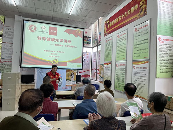市民政局、市慈善总会特意邀请第五人民医院副院长、国家二级健康营养师,开设营养健康知识讲座,为社区老人们普及健康饮食知识。