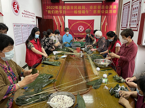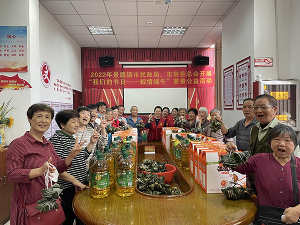 活动结束后,景德镇市民政局、市慈善总会为老人们送上现场包的粽子、咸鸭蛋、菜籽油等慰问品。老人们感受到了党和政府的关爱,提前度过了一个温馨愉快的端午节。