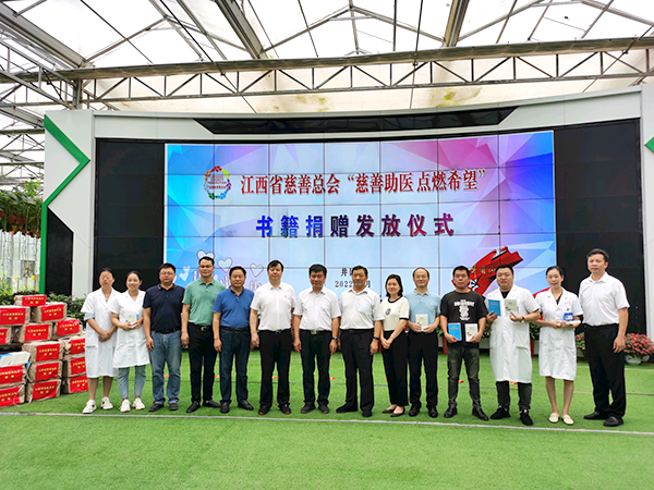 谢碧联副会长、张振球常务理事在讲话中指出,井冈山是革命的摇篮,是我国贫困退出机制建立后首个“摘帽”的贫困县。中国革命的星火从这里燃遍大江南北,脱贫攻坚战胜利的星火从这里席卷神州大地。瑞金是中国第一个红色政权中华苏维埃共和国的诞生地,中央革命根据地的中心,红军二万五千里长征的出发地之一,孕育了党的群众路线、苏区精神等宝贵精神财富,也是党和国家初心使命的重要起源地。选择井冈山、瑞金作为捐赠发放仪式地点,意义非常重大。希望这两本能够给老区的基层群众和医务工作者提供一些便捷价廉的治疗方法和正确有效的就医指引,给老区患病群众带来新的希望,播洒下慈善人仁心慈善的种子。他们强调,各地慈善会一定要认真落实省慈善总会的要求,尽快把这两本书发放到真正需要它的困难群众、医务工作者手中,发挥出它们的专业价值和指导作用,切实提高群众就医意识,改善群众的健康水平,进一步巩固拓展健康扶贫成果,助力乡村振兴!