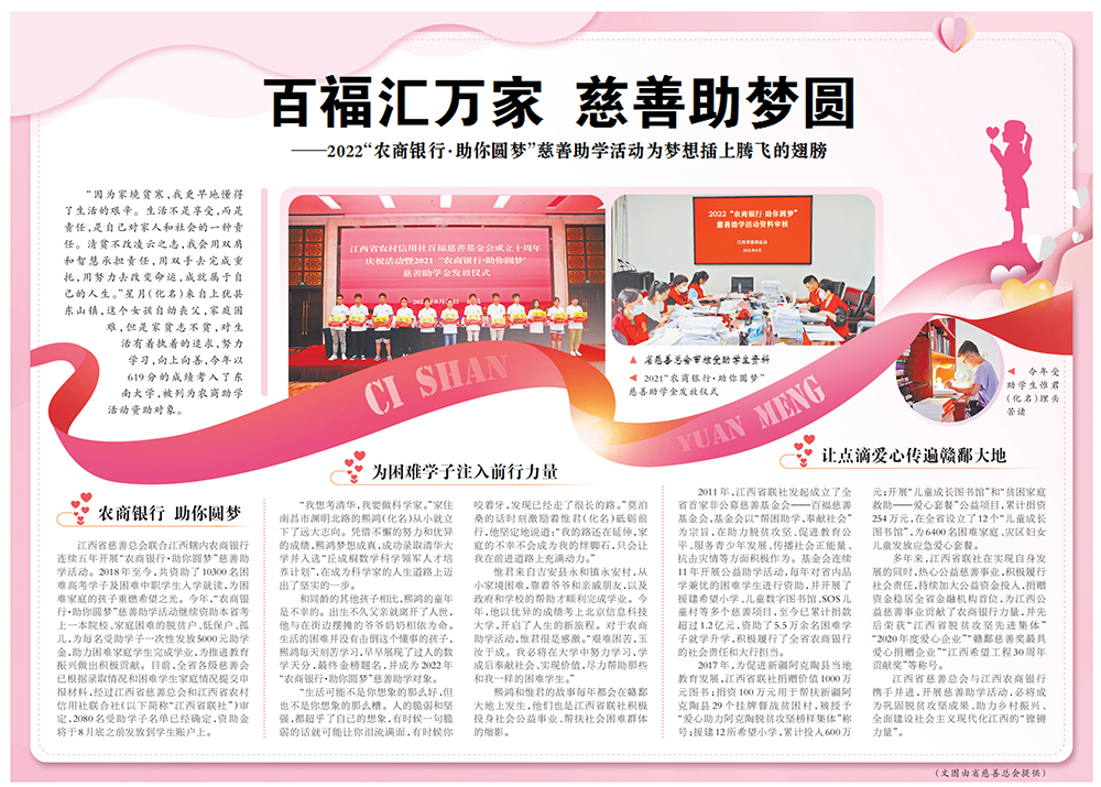 熙鸿和惟君的故事每年都会在赣鄱大地上发生,他们也是江西省联社积极投身社会公益事业、帮扶社会困难群体的缩影。