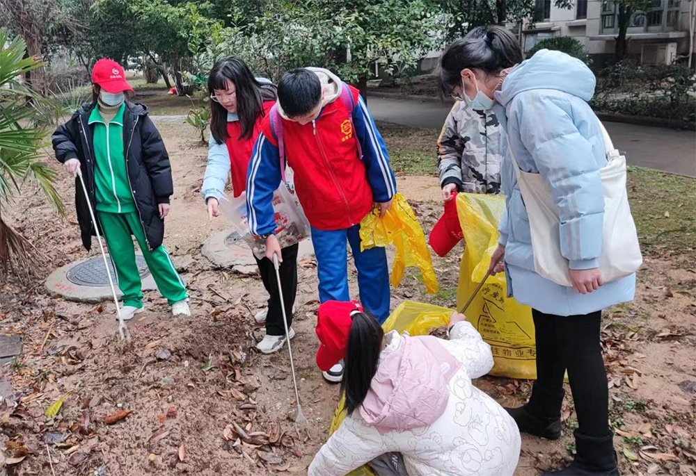 不管是丢弃在灌木丛里的矿泉水瓶、方便面盒、塑料袋,还是小小的烟头、瓶盖,统统逃不过志愿者们的法眼。特别是掉在小树头顶的脏“帽子”垃圾袋,大家互相帮助,用长棍子等工具,费了好大劲才清理下来。此次志愿服务活动,不仅激发了孩子们保护公共环境的意识,还培养了孩子们从小参与志愿服务的好习惯。(拟稿:聂翔)