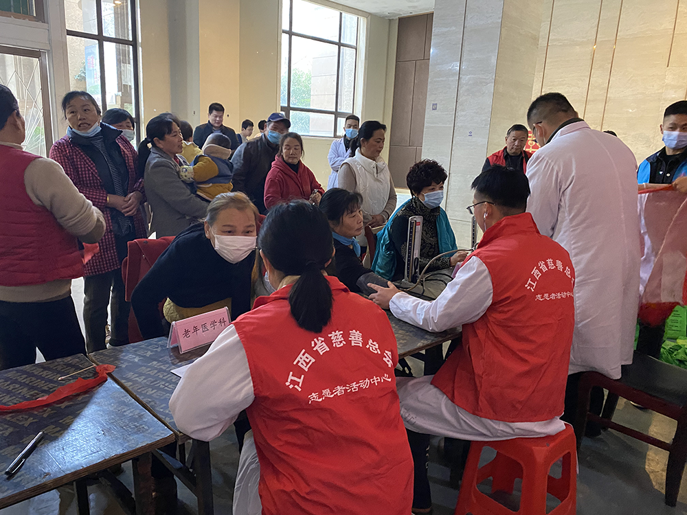 在第60个学雷锋纪念日来临之际,省荣军优抚医院慈善志愿服务团志愿者来到南昌市新建区红谷新苑社区居委会开展“继承优良传统,弘扬雷锋精神”健康义诊活动。