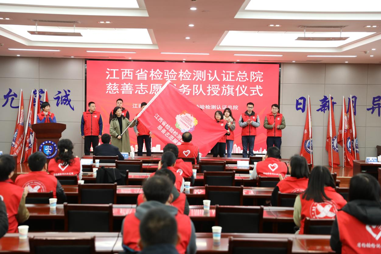3月3日,在第60个学雷锋纪念日到来之际,省检验检测认证总院慈善志愿服务队授旗仪式在南昌举行。省慈善总会志愿者活动中心主任谢薛琴向省检验检测认证总院张智怡队长授予团队旗帜。省检验检测认证总院党委书记王云、省慈善总会秘书处副处长官志平参加。