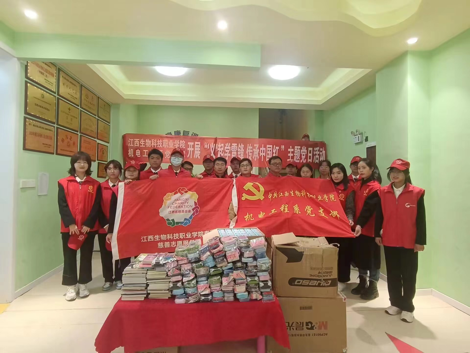 阳春三月时,涌动雷锋潮。为深入学习贯彻落实习近平总书记关于学习雷锋的重要指示精神,弘扬和践行新时代雷锋精神,江西生物科技职业学院机电工程系党支部和春雨慈善志愿服务团联合开展党建+“‘义’起学雷锋 传承中国红”活动。党员志愿者们为长期服务的南昌市青云谱区星语儿童康复训练中心捐赠了图书、文具等爱心物资。活动现场,志愿者与孩子们一起唱红歌、玩瑜珈球游戏,陪护康复训练……