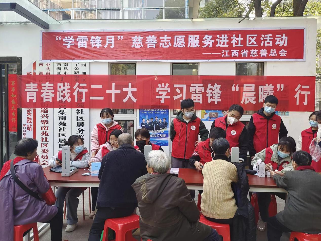 2023年3月5日是全国第60个“学雷锋纪念日”。为进一步弘扬雷锋精神,引导青年学子继承优良传统,弘扬志愿服务精神,江西中医药大学晨曦慈善志愿服务团走进南昌市西湖区丁公路街道兴柴南苑社区开展“青春践行二十大,学习雷锋‘晨曦’行”志愿服务活动,拉开了新学期志愿服务的序幕。晨曦志愿者们不仅为居民提供测量血压、血糖等基础护理,同时结合中医护理特色,为居民提供了健康咨询、中医推拿、艾灸体验等特色卫生健康志愿服务,得到了居民群众的好评。