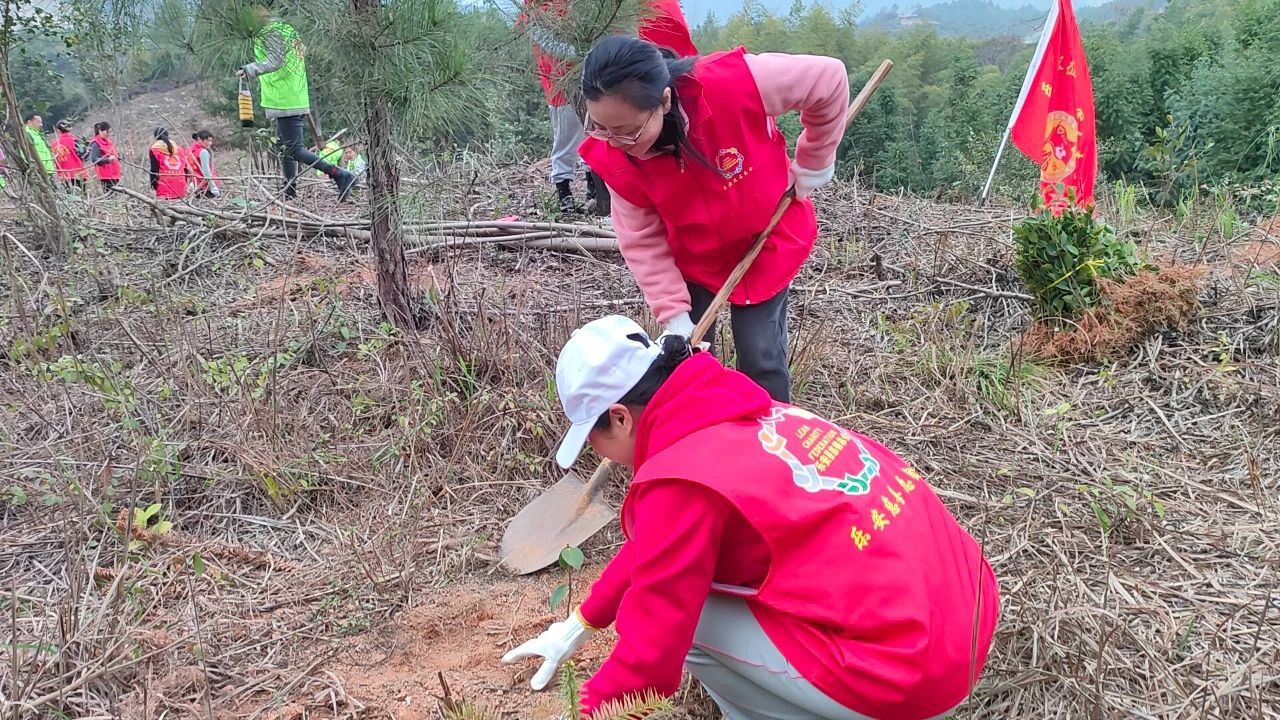 植树现场红旗飘扬,志愿者们热情洋溢,干劲十足,三人一组、五人一群,充分发挥“奉献、友爱、互助、进步”的志愿精神,有条不紊地开展挖坑、搬树苗、栽树、扶苗、培土、浇水等各个环节,衔接有序,到处都是忙碌的身影和欢声笑语。经过一上午的时间里,在技术员的指导下,一千棵油茶树苗全部种下,一棵棵树绿意盎然,在和煦的春风中焕发出勃勃生机。