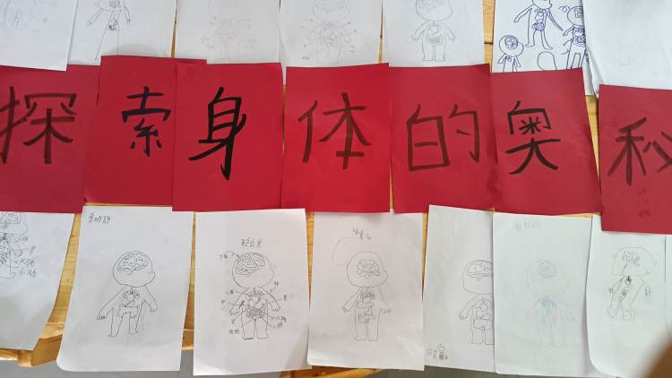 万安县田西村“少儿之家”,孩子们画出的身体结构图