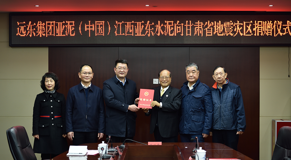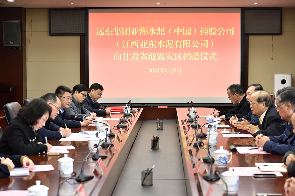 灾害无情,同胞有爱。2023年底甘肃省积石山县发生6.2级地震,造成人员伤亡和财产损失,远东集团亚泥(中国)控股公司江西亚东水泥有限公司情系灾区、慷慨解囊,向甘肃省地震灾区捐赠500万元,用于灾区恢复生产、重建家园。江西省台办主任张锋,省民政厅党组成员、副厅长、省慈善总会副会长李晖,远东集团亚泥(中国)执行长张振崑等参加捐赠仪式并座谈交流。