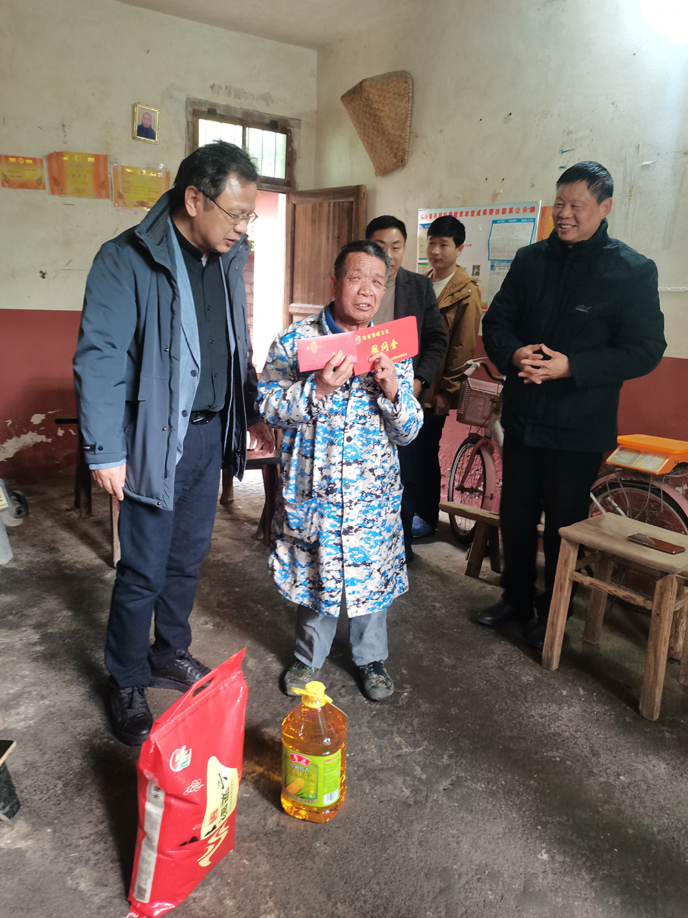 春节将近,年味渐浓。1月31日,省慈善总会副会长、北京谛恒集团董事长曾钫带队赴宜丰县、万载县开展“慈善情暖万家”走访慰问活动,深入两县4所养老机构和16户困难群众家庭,向他们致以亲切问候和新春祝福,并送上慰问金和米、油等慰问品。