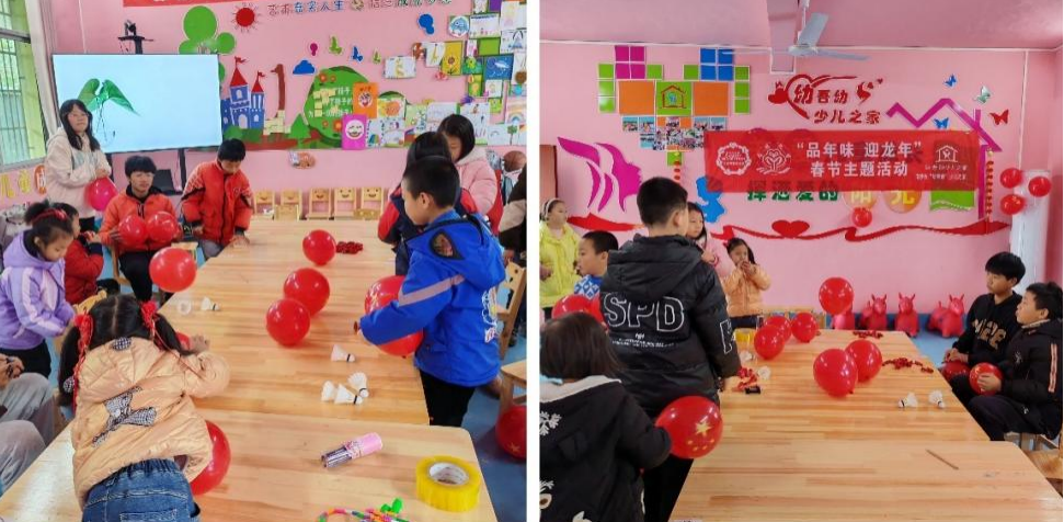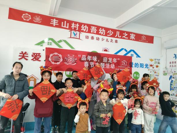 为庆贺春节,让孩子们知年俗、品年味,感受欢乐的春节氛围,全省“幼吾幼”少儿之家各项目村正在积极开展“寻年俗、品年味、集五福”的春节主题活动,福气满满的春联、龙年元素的装饰、喜迎新春的欢笑——少儿之家处处充满着过年的气氛,守护员带领孩子们花式品年味、热闹迎新年,齐乐“龙龙”过大年。