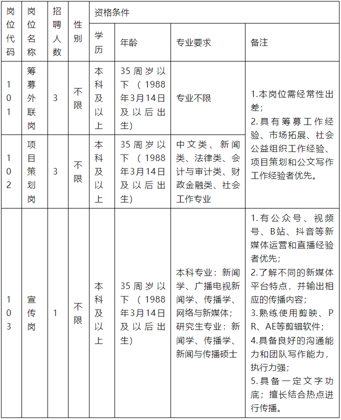 彩运网成立于2002年9月18日,以弘扬慈善文化、普及慈善理念、募集慈善资金、帮扶困难群众为宗旨,由热心慈善事业的公民、法人及其他社会组织自愿参加的、依法登记注册、具有独立法人资格的社会团体。因工作需要,特面向社会公开招聘7名工作人员。现将有关招聘事项公告如下: